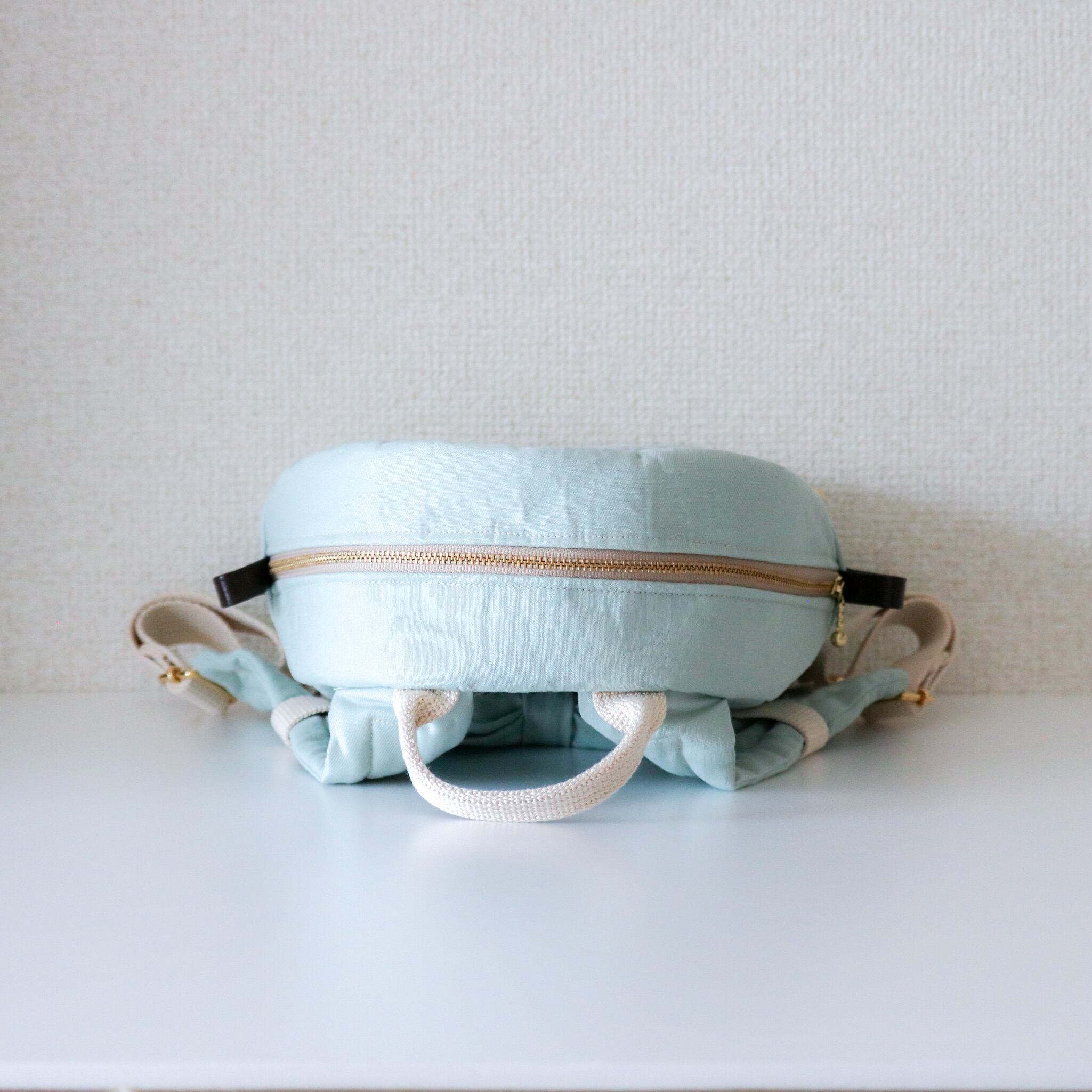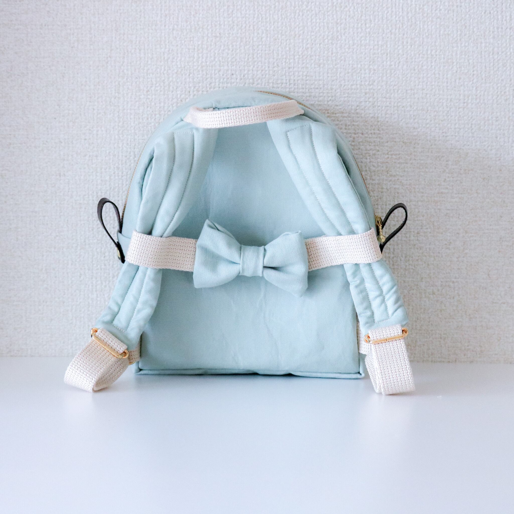 上品なミントグリーン、ロイヤルブルー、ネイビーのリュックです。