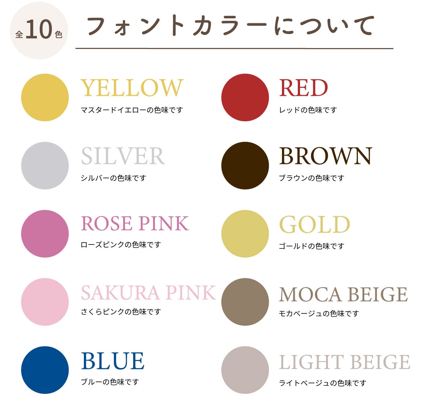 (イエロー/シルバー/ローズピンク/さくらピンク/ブルー/レッド/ブラウン/ゴールド/モカベージュ/ライトベージュ)
